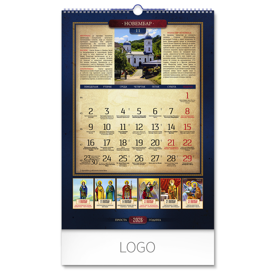 Zidni kalendar: 13 listova, mesečni