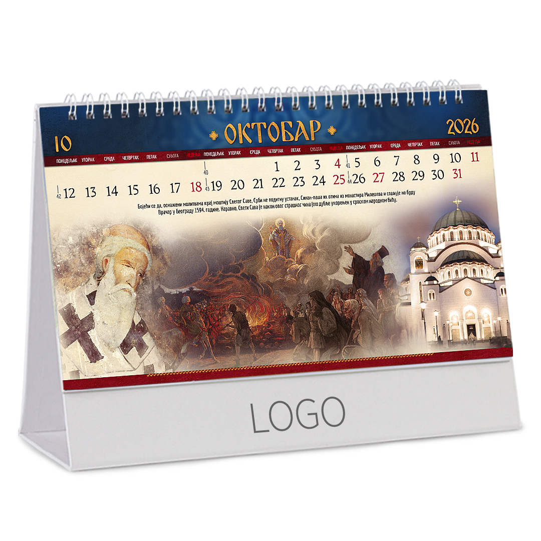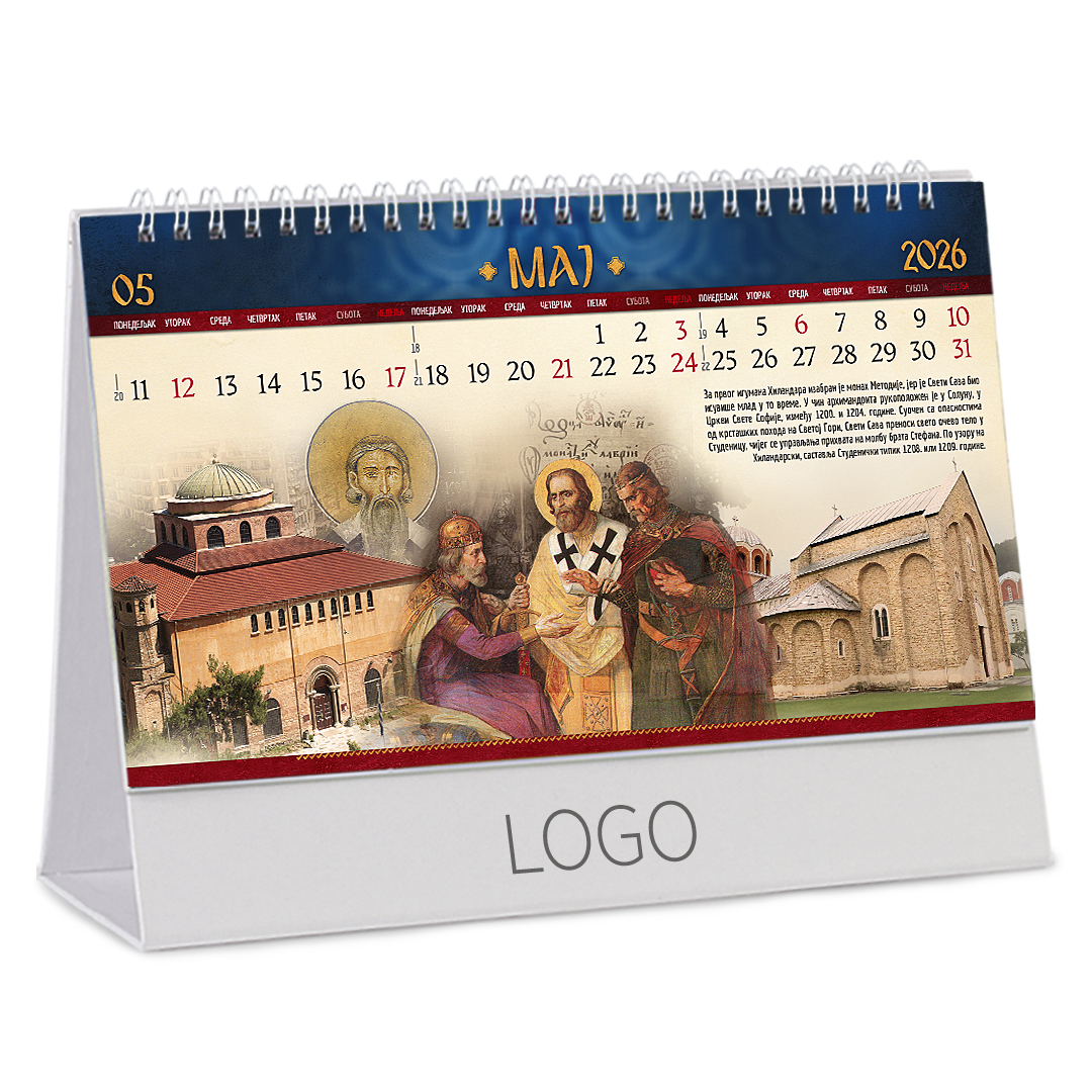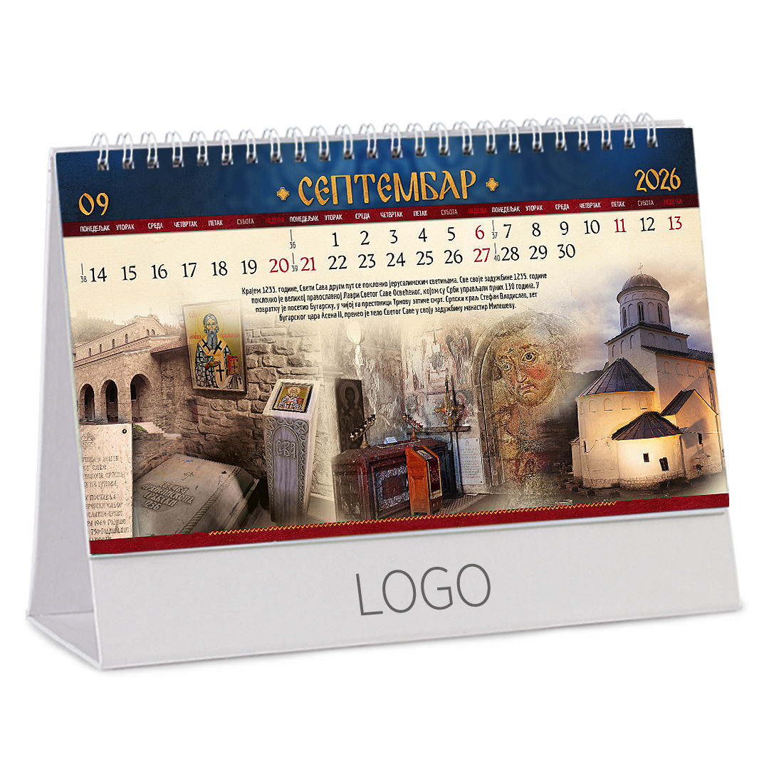 Stoni kalendar: 14 listova, mesečni, sa zlatotiskom na predlistu