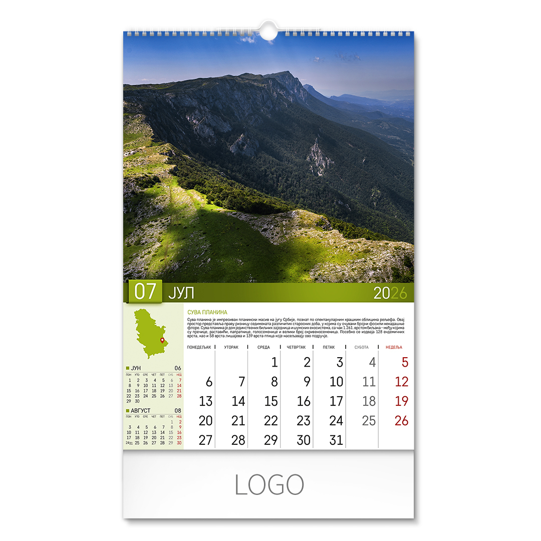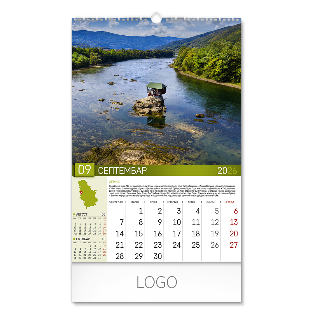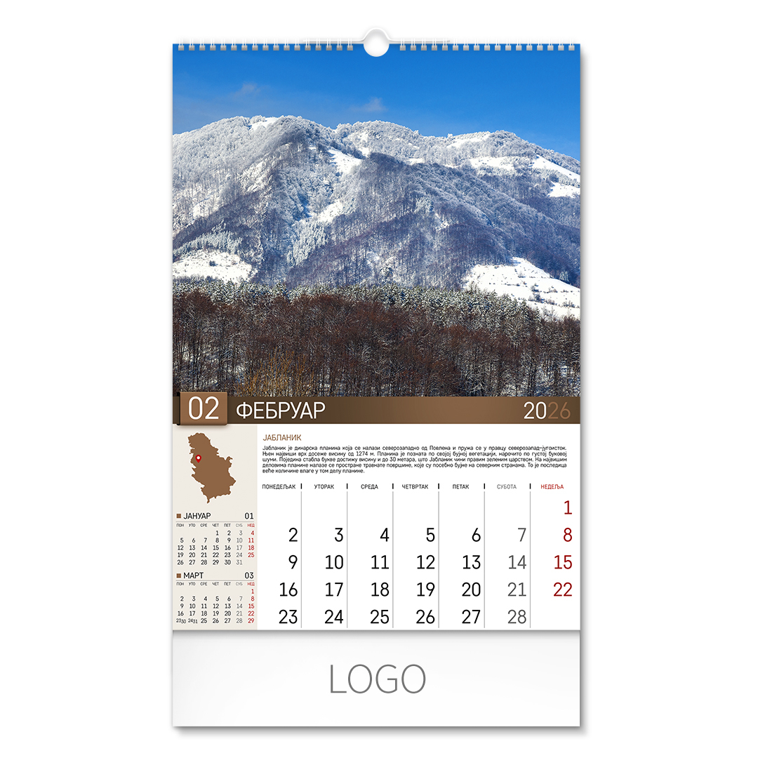| Zidni kalendar | 13 listova, mesečni |